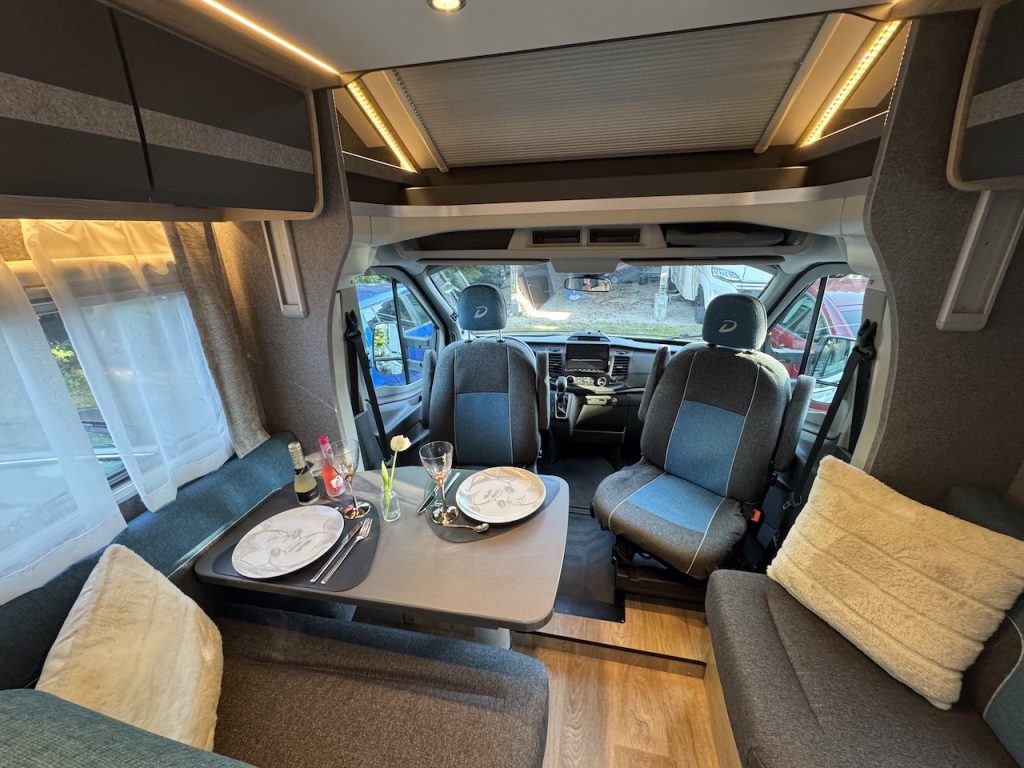 Modernes Wohnmobil mit Vollausstattung: KĂŒche, Bad, Betten und allem was Sie fĂŒr den perfekten Urlaub brauchen.